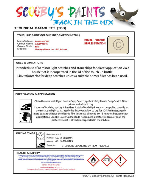 Paint Suitable For Austin Rover ARUM WHITE 200 Series NMF Touch Up Paint