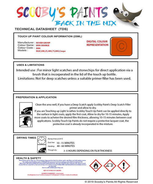 Paint Suitable For Austin Rover BRM ORANGE 400 Series ERM Touch Up Paint