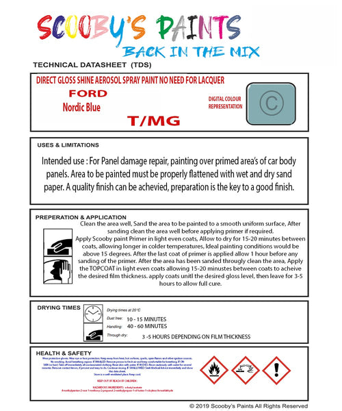Mixed Paint For Ford Escort Nordic Blue Aerosol Spray T/Mg