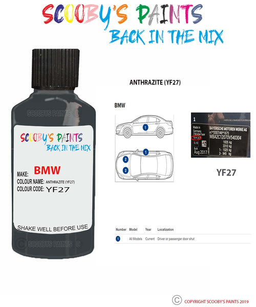 Paint For Bmw Anthrazite Paint Code Yf27/F27 Touch Up Paint Repair Detailing Kit