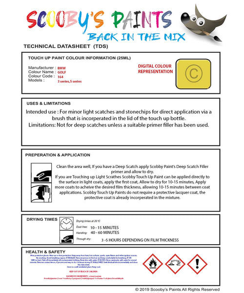 This Paint Kit is Suitable for BMW GOLF Paint Code 164 Touch Up Paint Repair Detailing Kit On Car Models: 3 Series,5 SeriesDuring the Years: 1971-1979