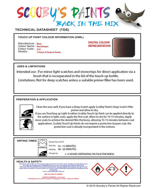 This Paint Kit is Suitable for BMW RAUCHTOPAS Paint Code X12 Touch Up Paint Repair Detailing Kit On Car Models: 3 Series,4 Series,6 SeriesDuring the Years: 2013-2018