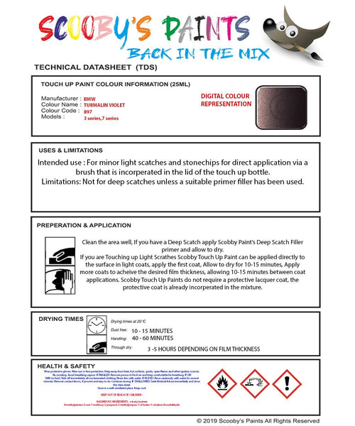 This Paint Kit is Suitable for BMW TURMALIN VIOLET Paint Code 897 Touch Up Paint Repair Detailing Kit On Car Models: 3 Series,7 SeriesDuring the Years: 2001-2004