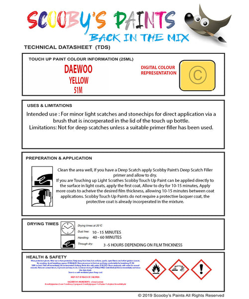 For Daewoo All Models Yellow Yellow Touch Up Paint Code 51M