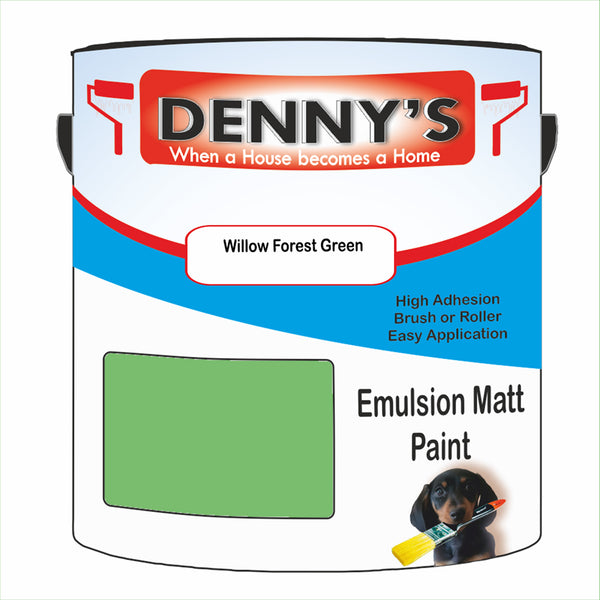 Denny's Emulsion Paint For Ceilings Colour- Willow Forest Green - Matte Low-Splatter Stain-Hide Bright