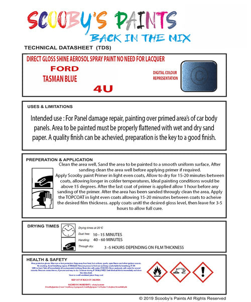 Mixed Paint For Ford Escort Mark Ii, Tasman Blue, Code: 4U, Blue