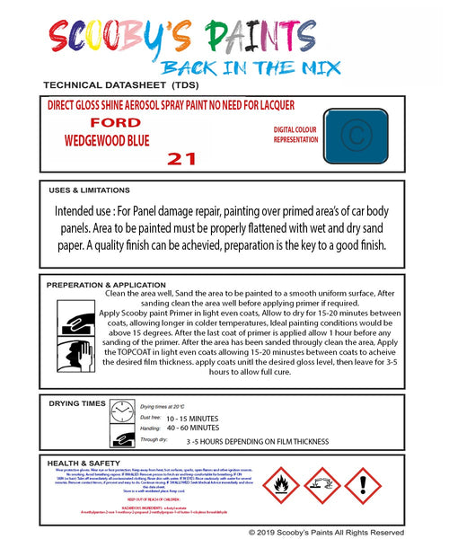 Mixed Paint For Ford Escort, Wedgewood Blue, Code: 21, Blue