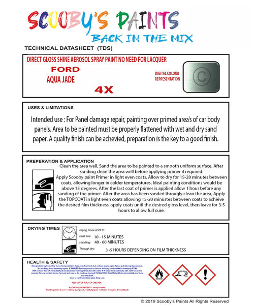 Mixed Paint For Ford Scorpio Aqua Jade Aerosol Spray 4X