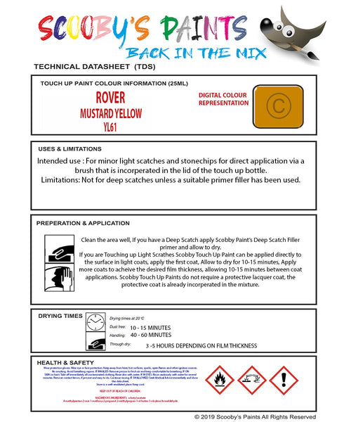 Mixed Paint For Mg Mgb, Mustard Yellow, Touch Up, Yl61
