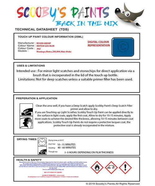 Paint Suitable For Austin Rover BRITISH GAS BLUE Mini-Moke JMZ Touch Up Paint