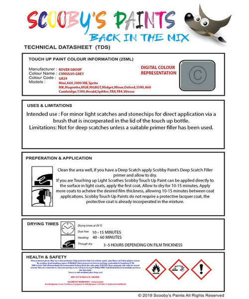 Paint Suitable For Austin Rover CUMULUS GREY Mini GR29 Touch Up Paint