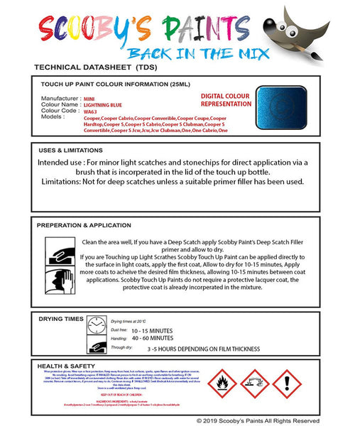 Paint Suitable For Mini Lightning Blue One Touch Up Paint Scratch Stone Chip Repair