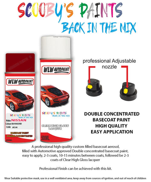 Paint Suitable For Nissan Micra Eau Rouge Red Aerosol Spray Car Paint + Clear Lacquer, Code:A54