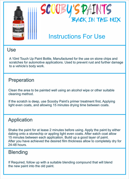 Scooby's Paint is your one stop location for products ranging from 10Ml touch-up kits to a 400Ml basecoat aerosol!