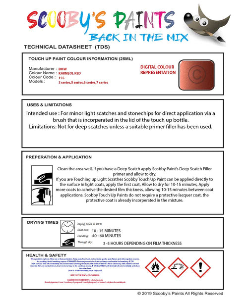 This Paint Kit is Suitable for BMW KARNEOL RED Paint Code 155 Touch Up Paint Repair Detailing Kit On Car Models: 3 Series,5 Series,6 Series,7 SeriesDuring the Years: 1979-1982