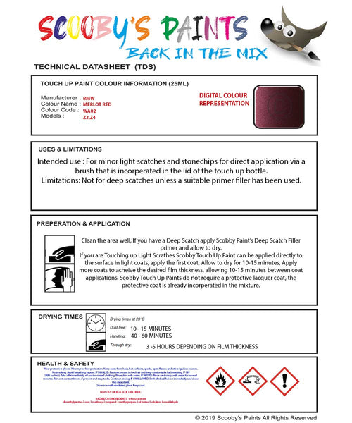 This Paint Kit is Suitable for BMW MERLOT RED Paint Code WA02/A02 Touch Up Paint Repair Detailing Kit On Car Models: Z3,Z4During the Years: 2002-2006
