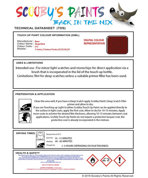 This Paint Kit is Suitable for BMW ZIEGEL RED Paint Code F11/YF11 Touch Up Paint Repair Detailing Kit On Car Models: 1 Series,3 Series,6 Series,X3,X5,X6,Z4During the Years: 1998-2013