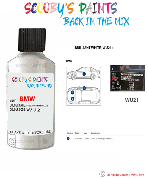 This Paint Kit is Suitable for BMW BRILLIANT WHITE Paint Code WU21/U21 Touch Up Paint Repair Detailing Kit On Car Models: 3 Series,4 Series,5 Series,6 Series,7 SeriesDuring the Years: 2007-2019