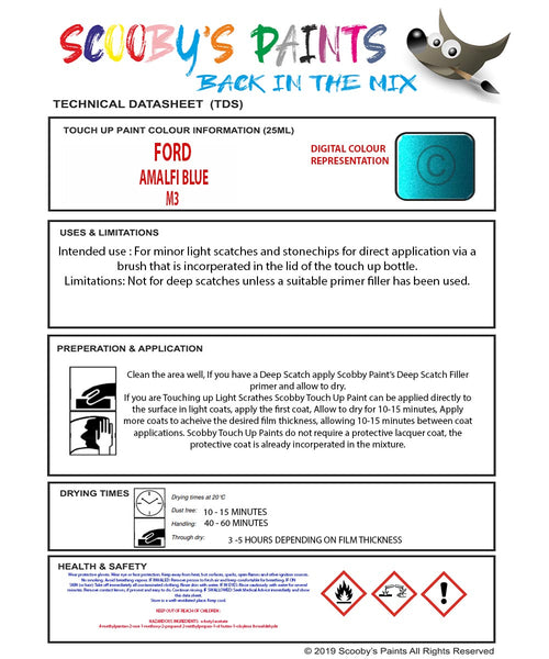 Mixed Paint For Ford Escort Cabrio, Amalfi Blue, Touch Up, M3