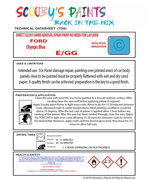 Mixed Paint For Ford Escort Iii Olympic Blue Aerosol Spray E/Gg