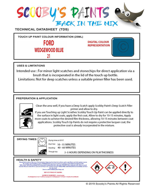 Mixed Paint For Ford Escort, Wedgewood Blue, Touch Up, 21