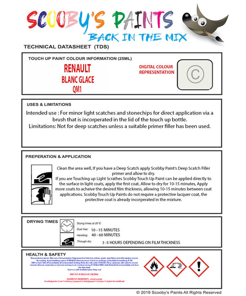 Paint For Renault Alaskan Blanc Glace White Qm1 Touch Up Scratch Stone Chip Kit