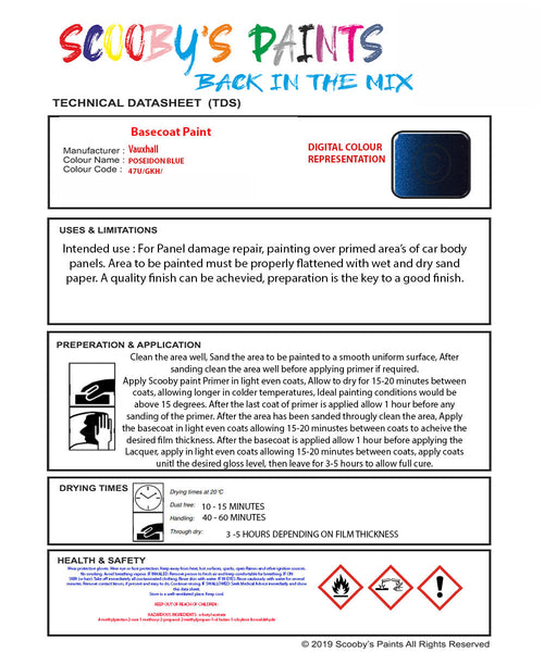Paint Mixed Vauxhall Antara Poseidon Blue 47U/Gkh Basecoat Car Spray Paint