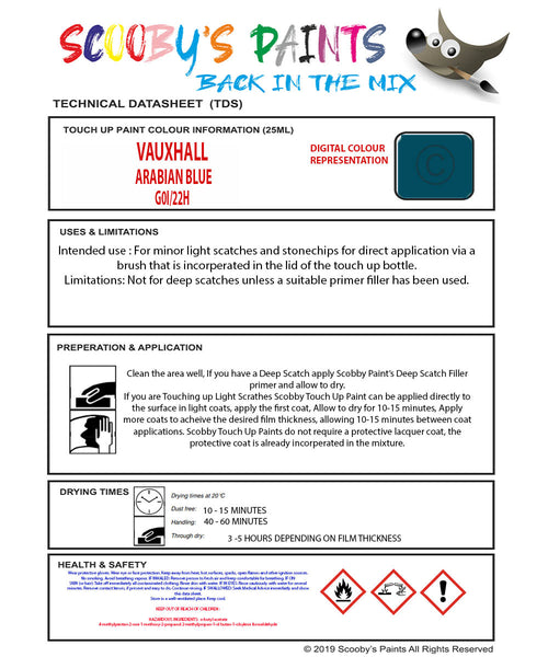 Vauxhall Meriva Arabian Blue Code G0I/22H Touch Up Paint