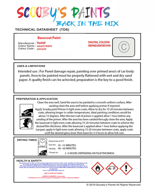 Paint Mixed Vauxhall Antara Galaxy White 26U/Gcb Basecoat Car Spray Paint