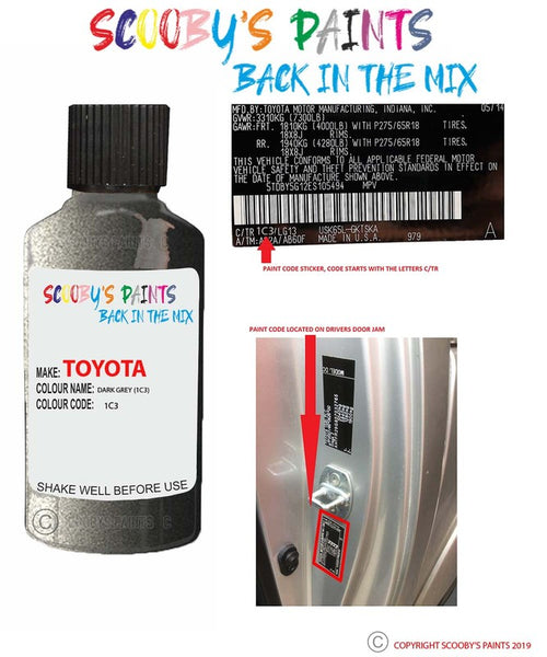 Paint Suitable For Toyota Verso Dark Grey Code 1C3 Touch Up Paint 1998-2008