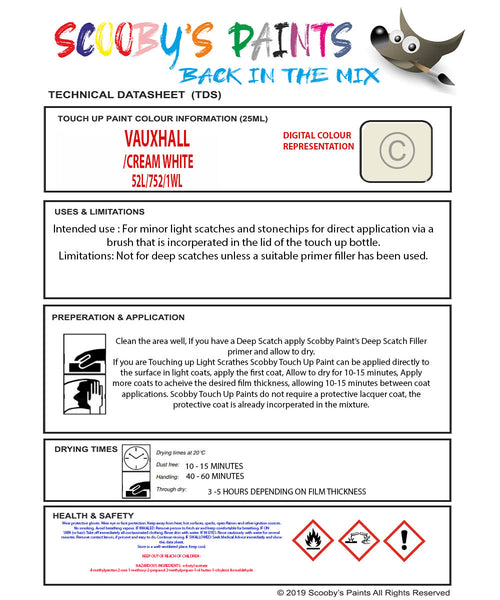Vauxhall Monterey Cremeweiss/Cream White Code 52L/752/1Wl Touch Up Paint