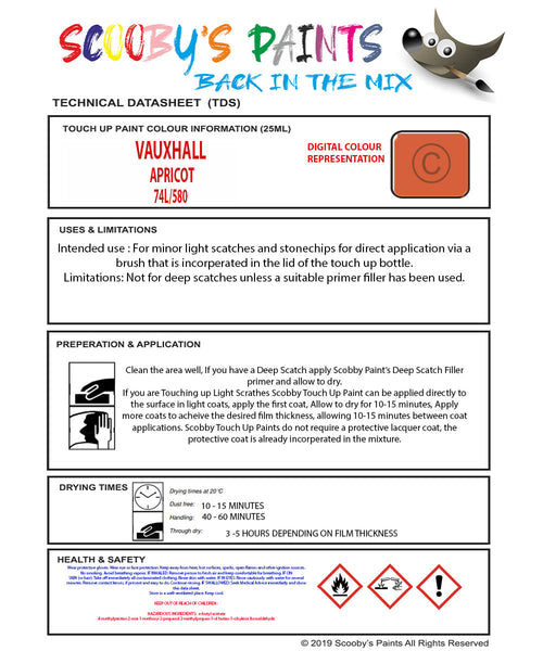 Restore your Vauxhall CORSA to its former glory with this 30ML APRICOT Code touch up paint. With a direct gloss finish and anti-rust properties, it is ideal for repairing scratches and stone chips. The perfect product to keep your car looking its best.