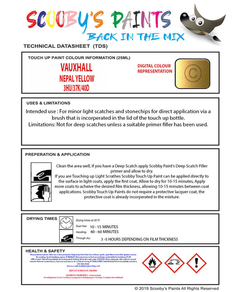Vauxhall Corsa Nepal Yellow Code 3Hu/37K/40D Touch Up Paint
