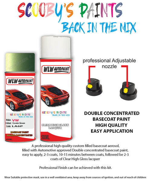 Paint Suitable For Volkswagen Beetle Cosmic Green Aerosol Spray Car Paint + Clear Lacquer, Paint Code: La6P