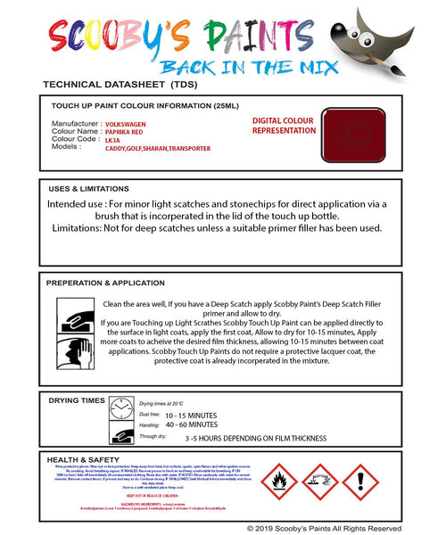 Paint Suitable For Volkswagen Sharan Paprika Red Code Lk3A Car Touch Up Paint 1990-2009